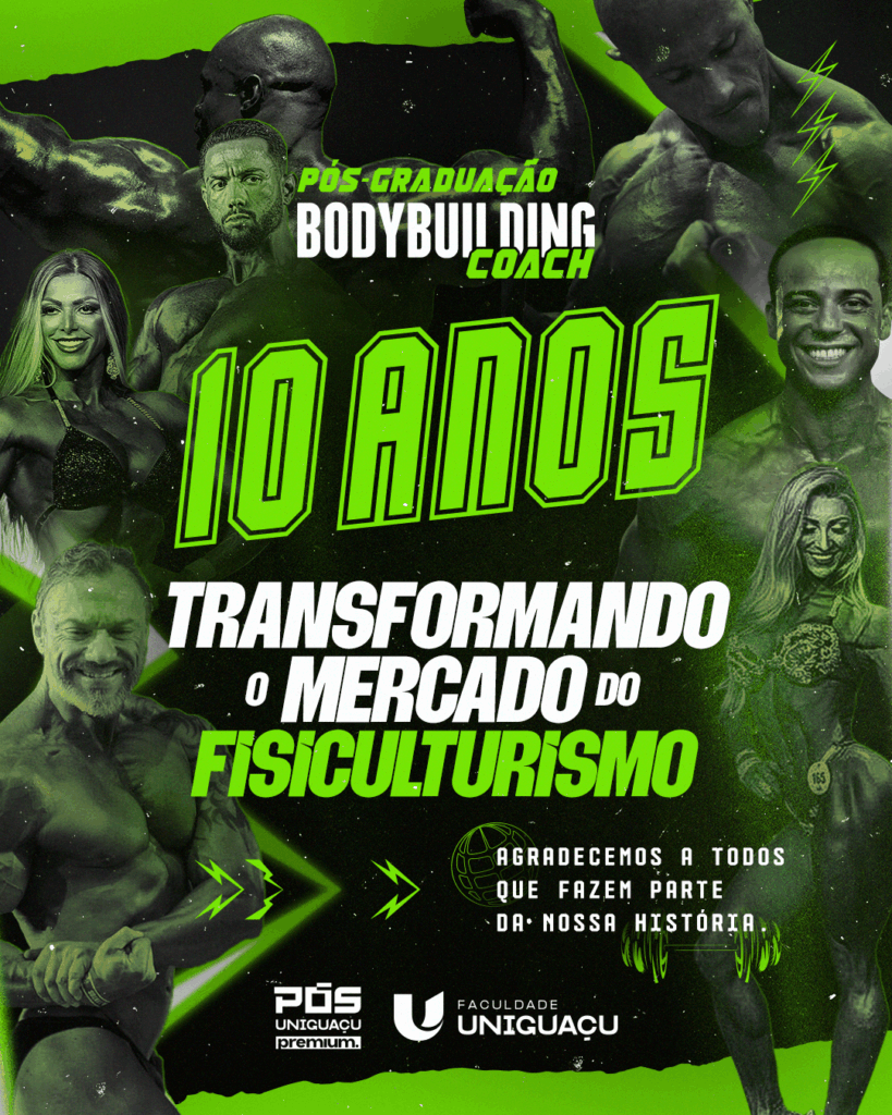 A Faculdade UNIGUAÇU foi pioneira e lançou a primeira pós-graduação em Bodybuilding Coach do mundo – com 10 anos de liderança no mercado e mais de 10 mil coaches formados.