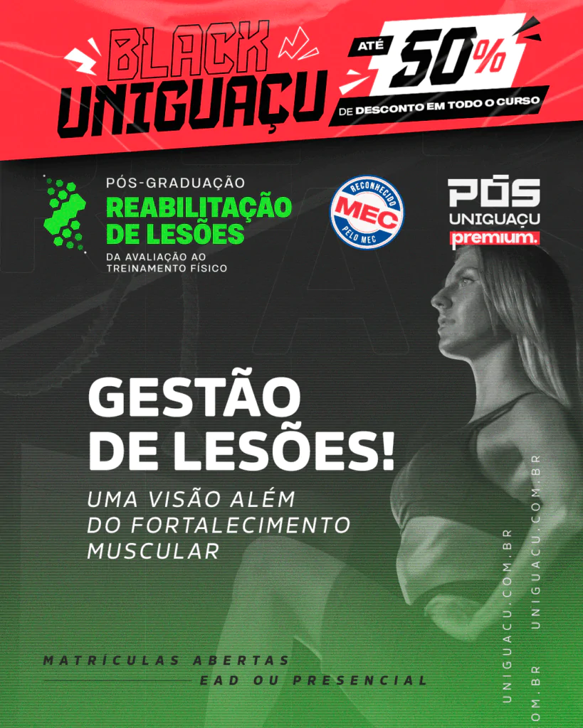 - Suplementação específica: creatina e colágeno hidrolisado, associados ao exercício, apresentam evidências promissoras na recuperação de tecidos musculoesqueléticos.