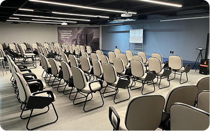 Espaços modernos e funcionais para eventos, treinamentos, palestras e workshops.